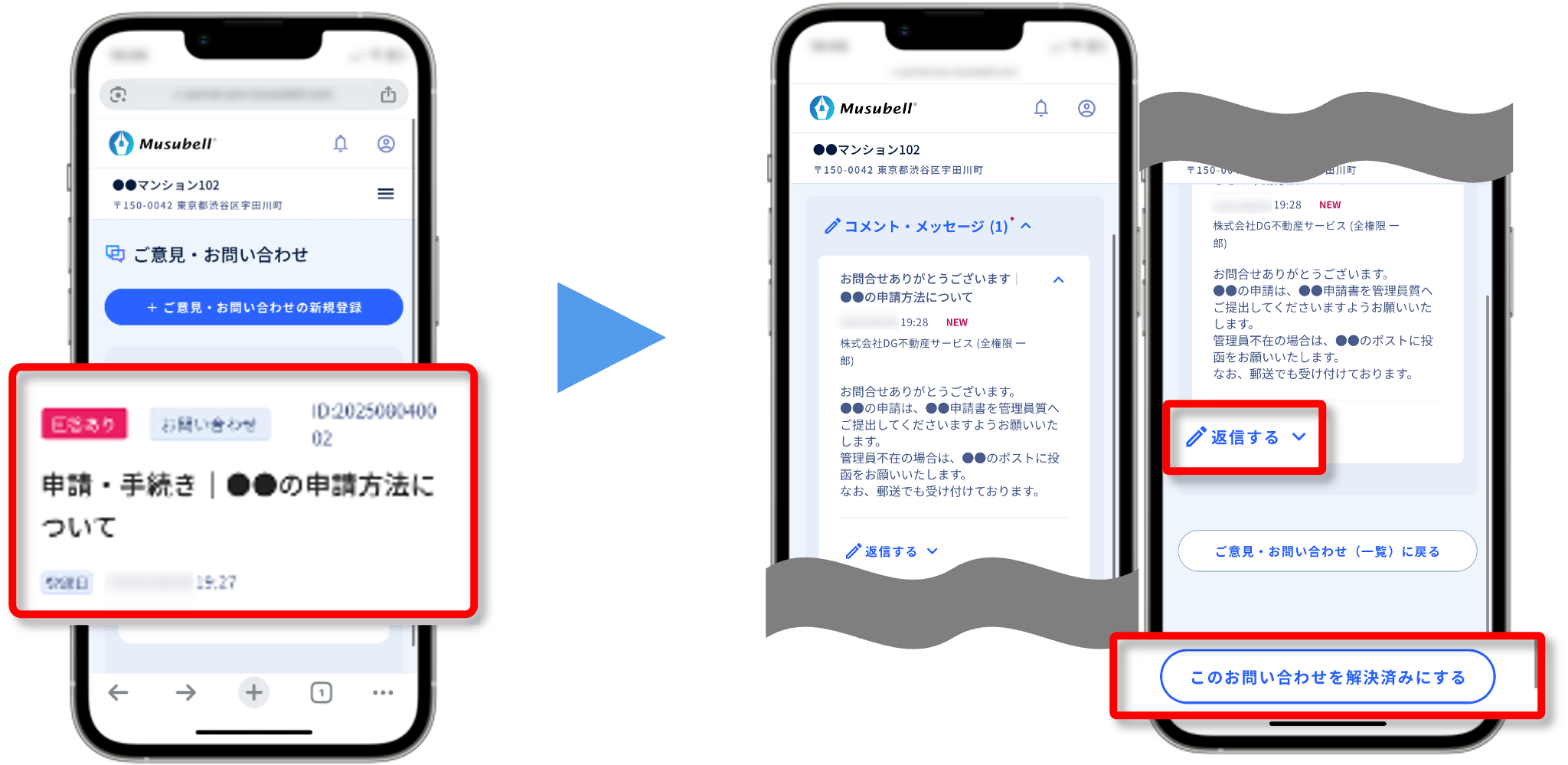 お問い合わせ…管理会社が返信可能な双方メッセージ